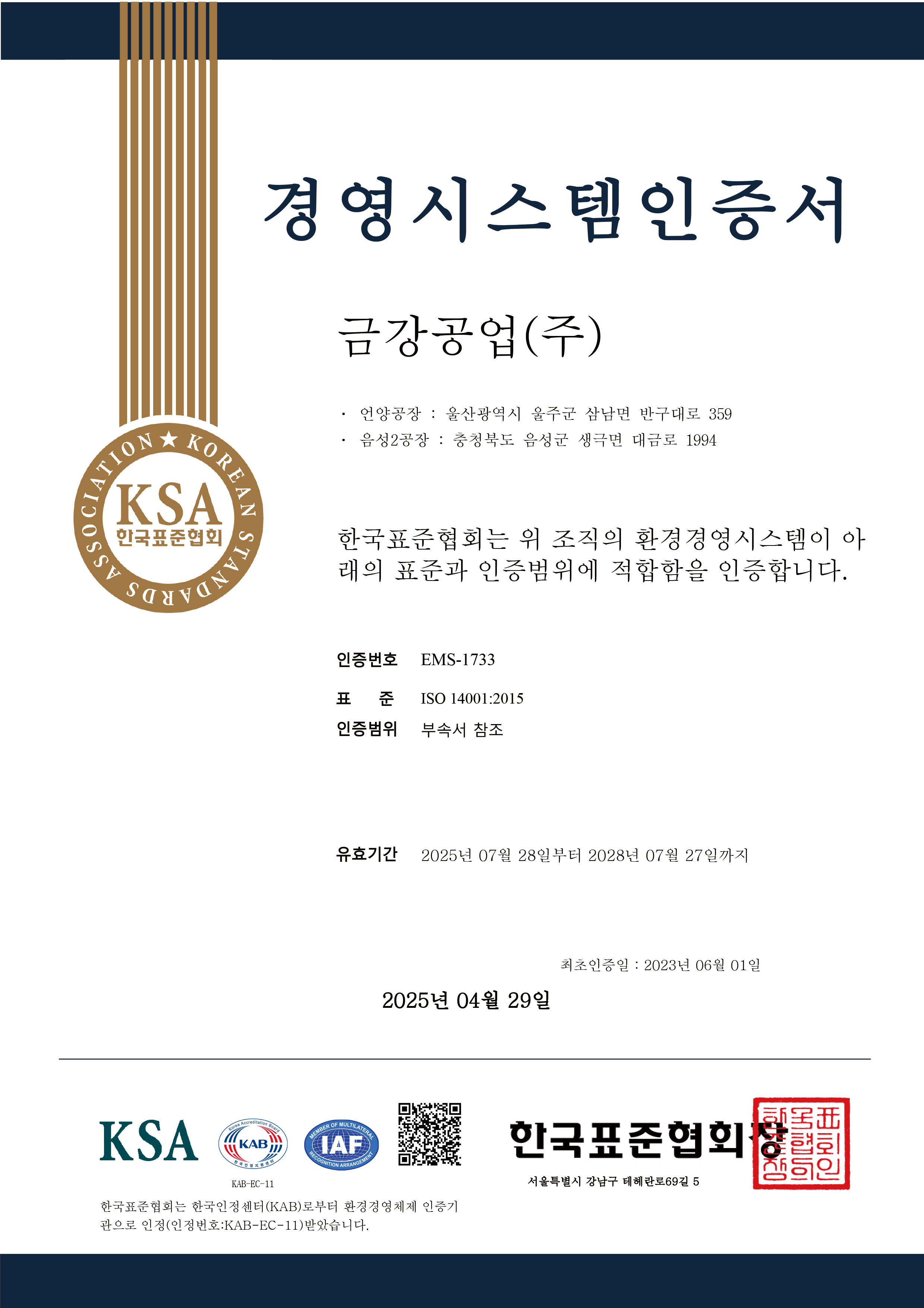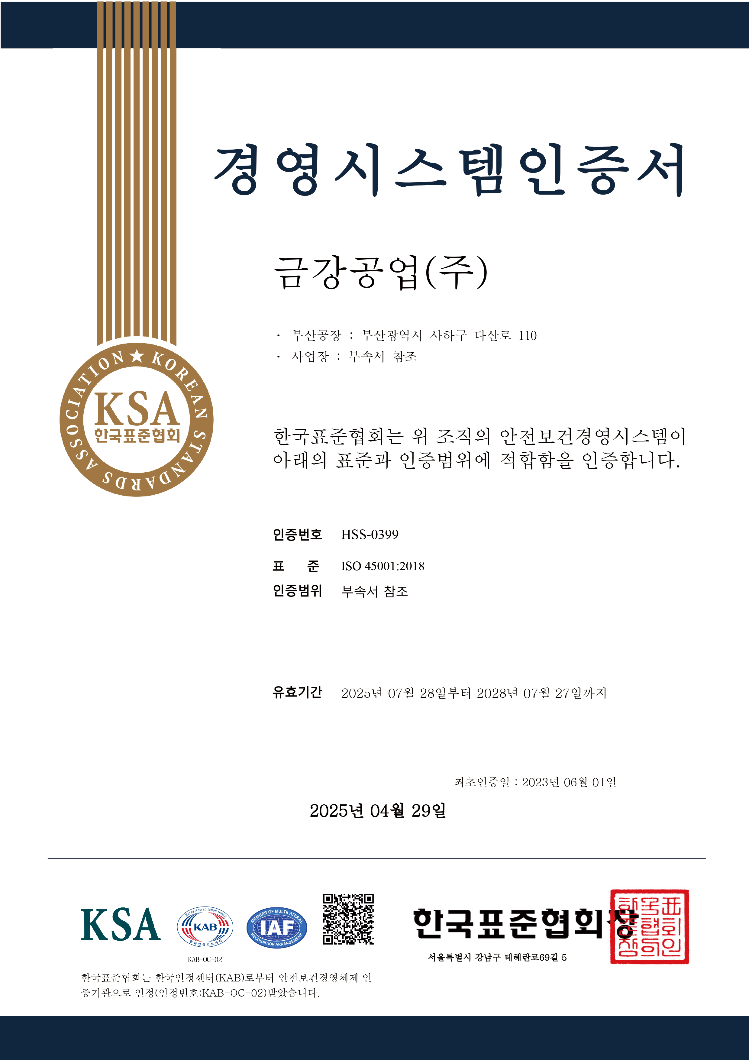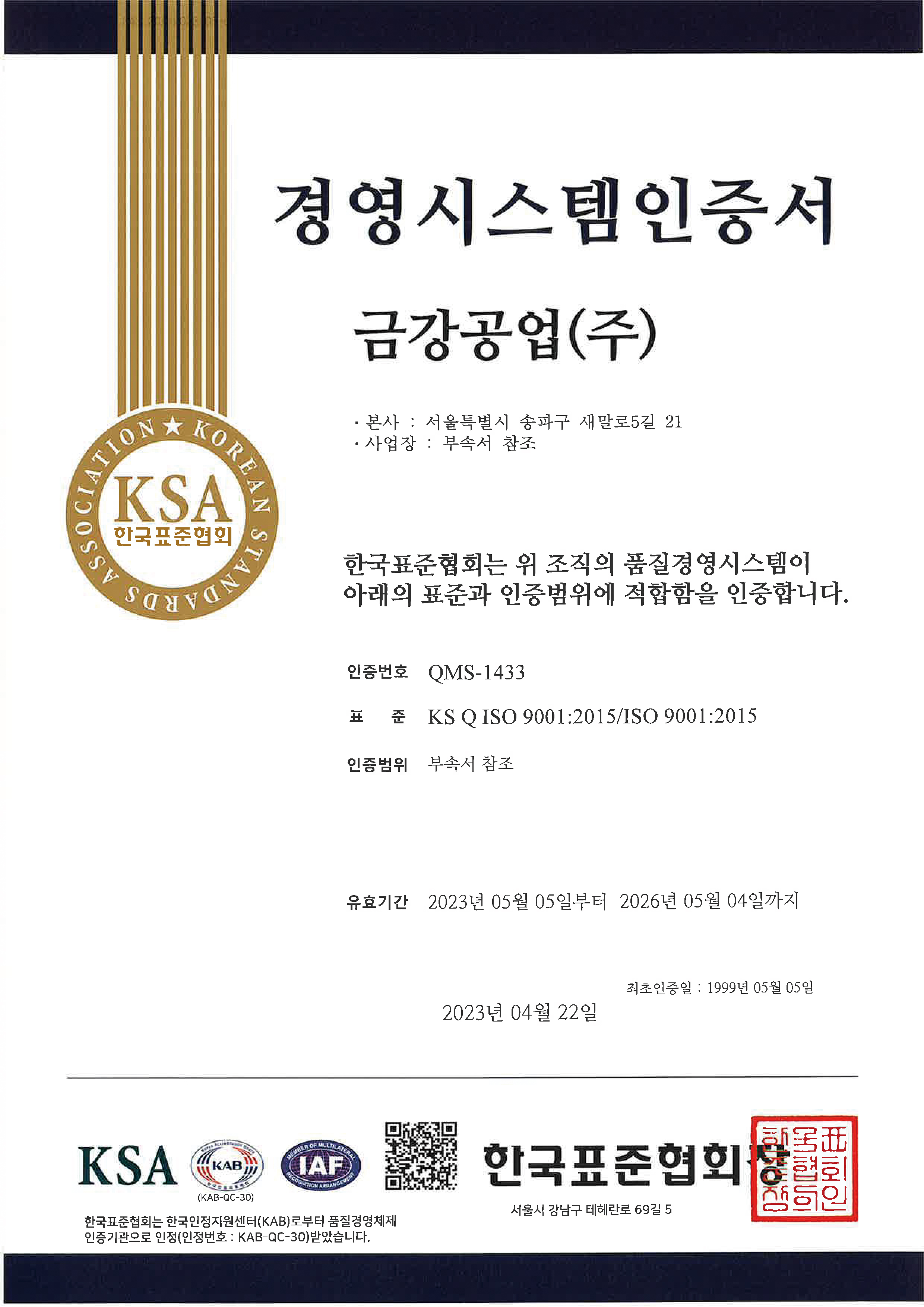 세상과 사람의 이어주는 기술, 금강공업의 약속입니다.