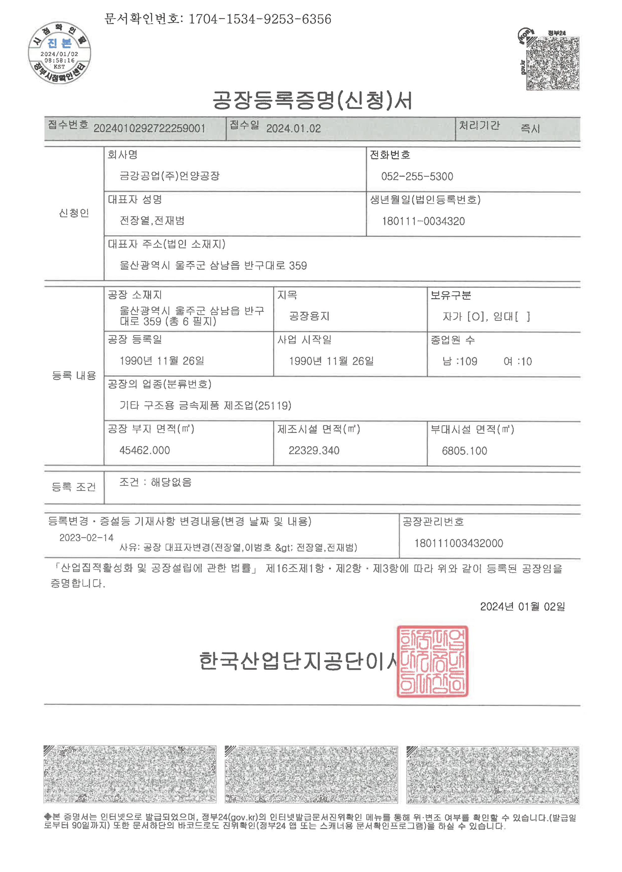 세상과 사람의 이어주는 기술, 금강공업의 약속입니다.
