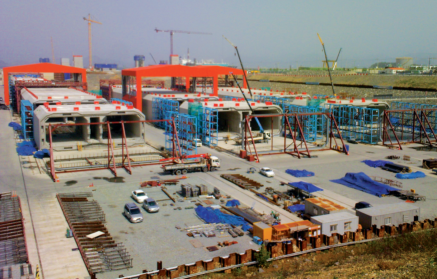 Introduced for the first time in South Korea, the immersed tunnel connects Busan to Geoje Island. The structure will be prefabricated at the workshop, sealed with bulkheads and floated through the buoyant force, mounted on the earth 50m underwater, before being connected together with the water pressure.